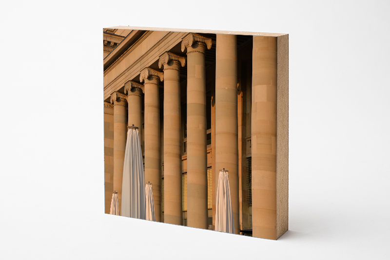 Hochwertiger Fotodruck aufgezogen auf MDF-Holzplatte. Bohrung auf Rückseite ermöglicht einfaches Aufhängen mit nur einem Nagel.